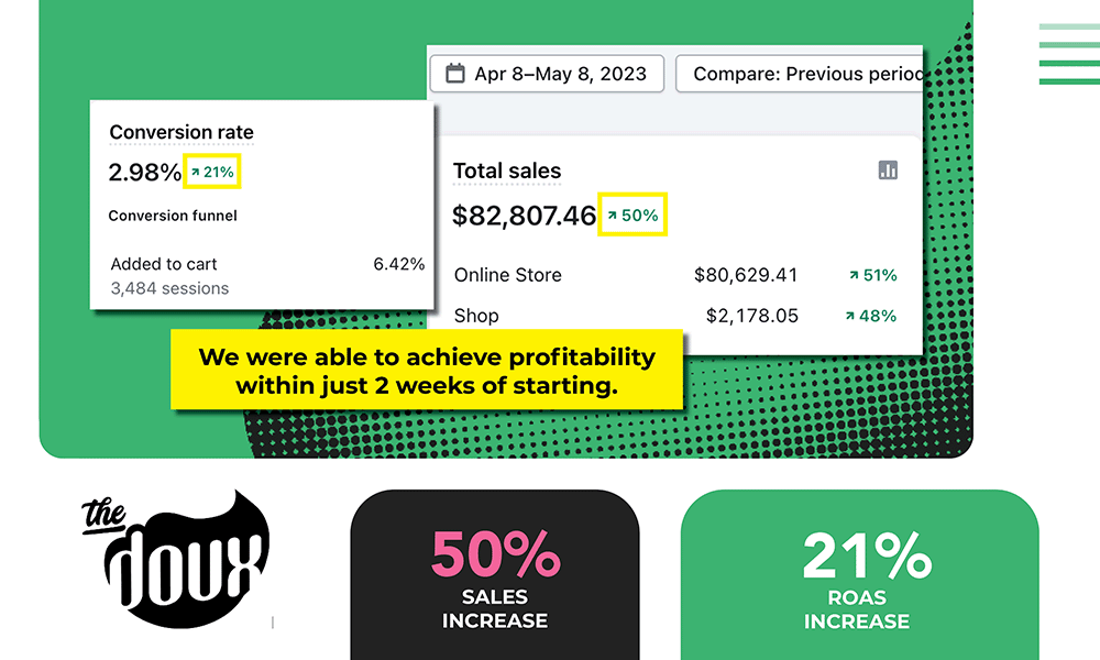 When the Doux came to us, they wanted us to bring an inactive Facebook ads account to profitability.